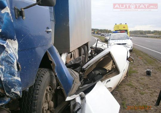 27 сентября в 15.20 в Высокогорском районе РТ на 809 километре трассы Москва – Уфа произошла очередная авария. 33-летний водитель автомобиля ВАЗ-2105, превысил скорость, обеспечивающую безопасность дорожного движения, выехал на полосу встречного движения и столкнулся с грузовым автомобилем КамАЗ, за рулем которого находился 50-летний водитель.