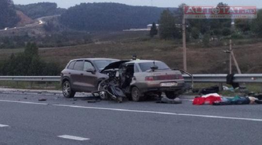 ВАЗ-2110 двигался из Чистополя в Нижнекамск, иномарка – навстречу. Очевидцы ДТП рассказывают, что внезапно Volkswagen Touareg вылетел на встречную полосу.