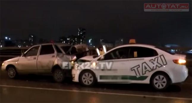 Спустя некоторое время в зад «Ладе» на приличной скорости въехал автомобиль такси, за рулем которого оказалась девушка. В мгновение ока водитель оказался под собственной машиной и при падении сильно ударился головой. По словам девушки из такси виновником аварии стал грузовик: