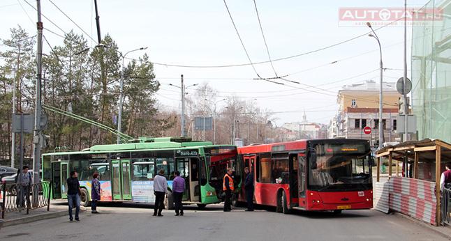 Вчера в Казани произошло ДТП с участием красного автобуса и троллейбуса ЗИУ. В результате столкновения двух транспортных средств пострадала 67-летняя пенсионерка, сообщает пресс-центр ГИБДД.