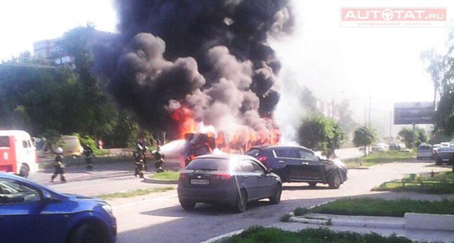 Сегодня утром, 16 июня, на перекрестке улиц Аделя Кутуя и Гвардейская загорелся красный автобус, следовавший по маршруту №22. Сообщение о возгорании поступило в 7:51 утра на пульт экстренных служб, а спустя 18 минут огонь удалось потушить, сообщает представитель МЧС по РТ Андрей Родыгин.