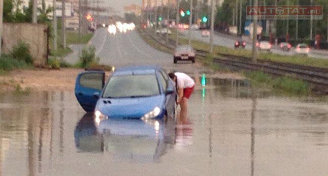 Примечательно, но затопило не только центральные улицы Казани, но дворы. В социальных сетях стали появляться фотографии и сообщения о том, что машины после гидроудара начали глохнуть прямо посреди дороги, что приводило к пробкам, а один из жителей Казани даже успел составить петицию к мэру города Ильсуру Метшину, чтобы тот привел в порядок ливневки.