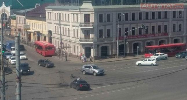 По информации ГИБДД, авария произошла в 13:05 часов. 21-летний водитель Mitsubishi следовал по улице Татарстан со стороны ул. Пушкина в направлении ул. Тукая, где на перекрестке с ул. Московская решил проскочить на запрещающий сигнал светофора и столкнулся с красным автобусом.