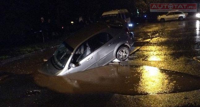«Пока машина стояла в таком положении, яма начала постепенно наполняться водой и, скорее всего, двигатель тоже замочило», - отметил водитель Lacetti.