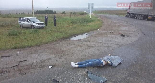 Трагедия случилась в 9:45 часов. По предварительной информации, водитель автомобиля «Скания» 1963 года рождения на перекрестке равнозначных дорог во время движения по второстепенной дороге нарушил п. 13.9 ПДД и не пропустил автомобиль LADA Kalina под управлением водителя 1968 г.р., двигавшегося со стороны села Чупаево на Альметьевск.