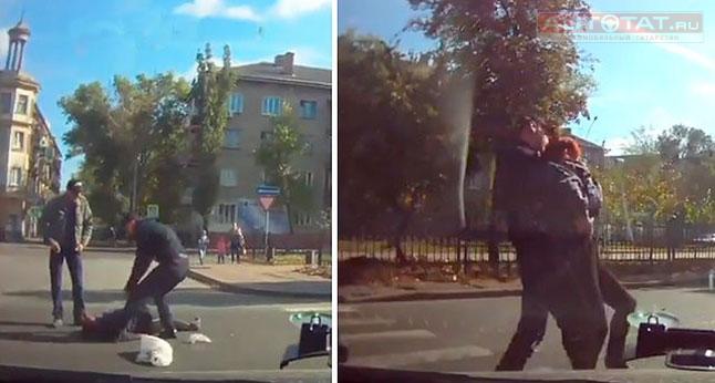 На помощь к женщине спешит один из очевидцев, однако водитель его опережает, хватает пенсионерку и пытается затолкать к себе на заднее сидение, а затем вовсе бросает на произвол судьбы и покидает место ДТП вместо того, чтобы вызвать скорую помощь.