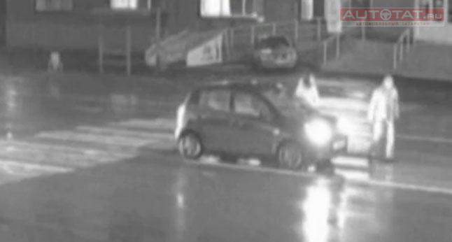 Обратите внимание, что женщина-водитель вышла из машины, убедилась, что ее малолитражка получила незначительные повреждения, а сбитый пешеход самостоятельно может передвигаться, и просто уехала с места ДТП.