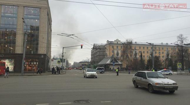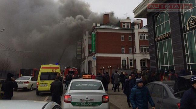 «Задымление такое, что скрывает находящийся неподалеку «Баскет-холл», — отмечает корреспондент «БИЗНЕС Online».