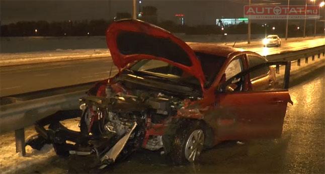 В минувшие выходные на Кремлевской дамбе пьяная автоледи на высокой скорости врезалась в железный отбойник. Детали KIA Rio раскидало по проезжей части и только чудом никто не пострадал.