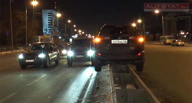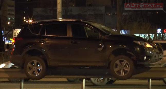 Отметим, что в аварии пострадал не только внедорожник Toyota, залетевший на отбойник, но и автомобиль Nissan. По словам автоледи, ка только загорелся зеленый сигнал светофора, она начала движение, однако в этот самый момент на ее машину посыпались детали от Toyota.