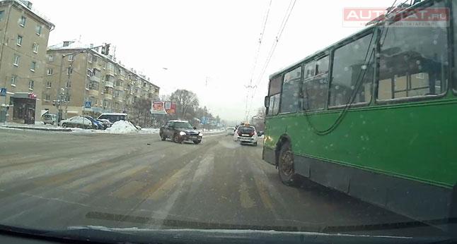 На видео видно, как на пересечении улиц Гагарина и пр. Ибрагимова произошло ДТП. Водитель троллейбуса под номером 1223 сначала остановился у стоп-линии, а затем начал движение на желтый сигнал светофора. В итоге, казанский троллейбус неспешно проехал перекресток на запрещающий сигнал светофора, хотя вполне мог дождаться “зеленого”.