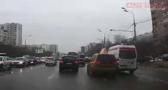 В Интернете набирает популярность видеоролик, на котором хамоватый водитель такси решил “проучить” скорую помощь с включенными проблесковыми маячками за подрезание.