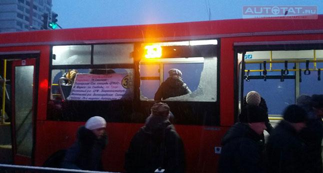 Похоже водитель одного из маршрутных автобусов не выдержал безопасную дистанцию и решил обогнать на повороте своего коллегу. В итоге, автобус, следовавший по маршруту “35” врезался в бок автобусу под номером “18”.