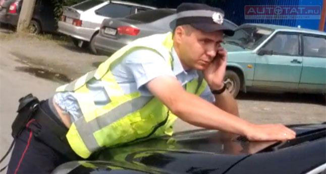 В этот самый момент водитель иномарки завел двигатель и попытался скрыться с места, однако дорогу ему преградил инспектор ГИБДД, который впоследствии оказался на капоте автомобиля. На крики остановиться казанец никак не реагировал, поэтому инспектор достал табельное оружие и разбил лобовое стекло иномарки. Только после этого водитель затормозил.