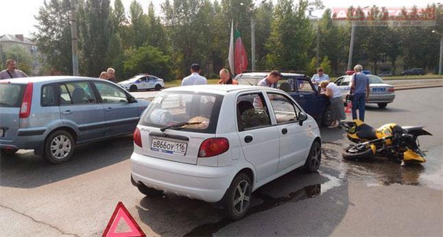 Вчера утром, 24 июля, в Московском районе Казани произошло столкновение байкера с тремя автомобилями. Сообщается, что водитель мотоцикла передвигался по городу без мотошлема и экипировке, а его байк не был зарегистрирован в ГИБДД.
