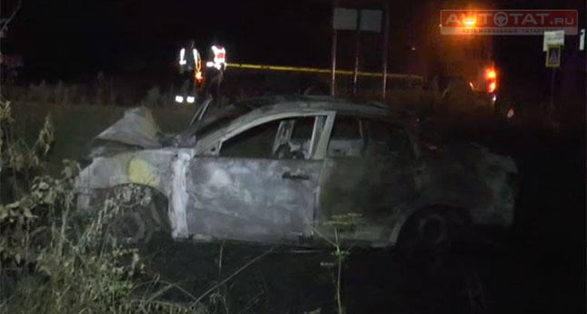 Серьезное ДТП произошло минувшей ночью на перекрестке ул. Тэцевская и Автосервисная в Казани. Нетрезвый водитель на Nissan Almera врезался в опору трубопровода, после чего иномарка загорелась.