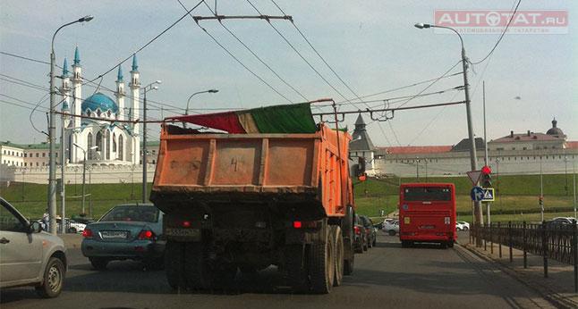 В соц. сетях появилась фотография самосвала, который прикрыл мусор в кузове флагом Республики Татарстан. Казанцы назвали такой поступок водителя “глумлением над символом республики”.