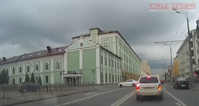 В первом выпуске от avto.kazanfirst.ru видно, как белый Mercedes занял не свою полосу и преградил путь другим участникам. А вот другой седан решил резко развернуться через двойную сплошную.