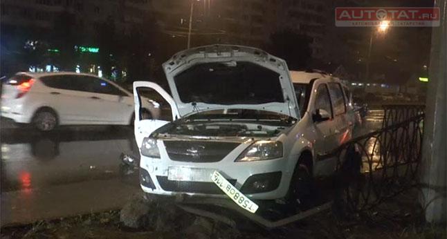 По словам очевидцев, водитель “Лексуса” двигался на скорости 160 км/ч. От удара Largus выбросило с дороги в столб и дорожное ограждение.