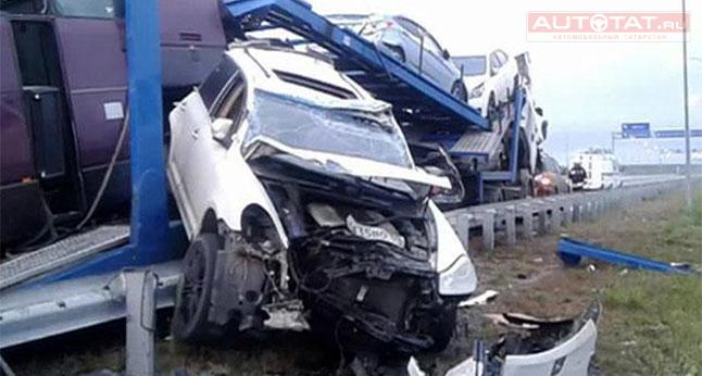 Известно, что автобус следовал по маршруту Москва-Ереван. По предварительной информации, его водитель не заметил припаркованный на обочине автовоз и буквально залетел на него.