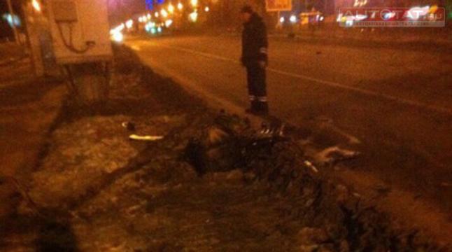 А вот в отделе пропаганды ГИБДД заявили, что никакого взрыва не было. ДТП случилось в 00:20 часов из-за того, что 25-летний водитель ВАЗа наехал на бордюр, а после врезался в столб,потеряв упрвление.
