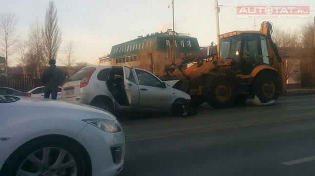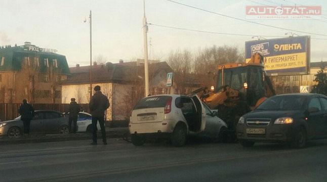 Дорожно-транспортное происшествие случилось в 8:05 часов, когда 25-летний водитель ЛАДА-11930 в нарушение п. 9.2 ПДД выехал на встречную полосу движения и столкнулся с погрузчиком-экскаватором JCB под управлением 44-летнего водителя.