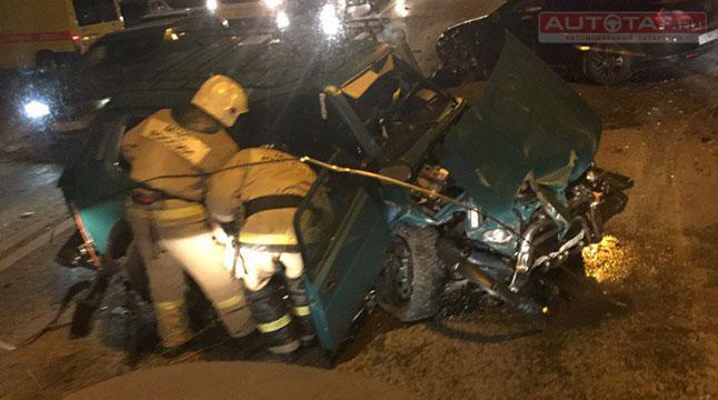 Страшное ДТП произошло вчера, 23 ноября, в 20:31 часов на Сибирском тракте в Казани. Водитель “Нивы” выехал на встречную полосу движения, где столкнулся с Daewoo Matiz.