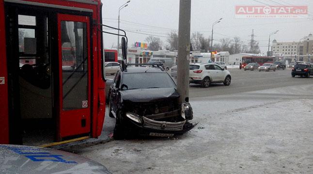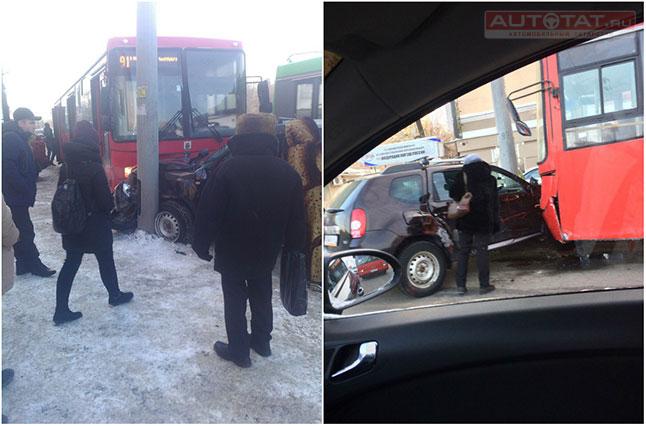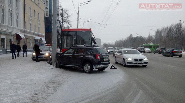 В ГИБДД Казани нам рассказали подробности ДТП с участием автомобиля Renault Duster и красного автобуса 91-го маршрута, которое произошло вчера, 8 декабря, на ул. Ершова.