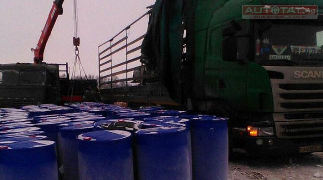 10 января опасный груз переместили из полуприцепа перевернувшейся фуры на обочину, а уже после вытащили из кювета “Сканию” и поставили ее на колеса. Груз остался охранять на ночь экипаж ГИБДД.