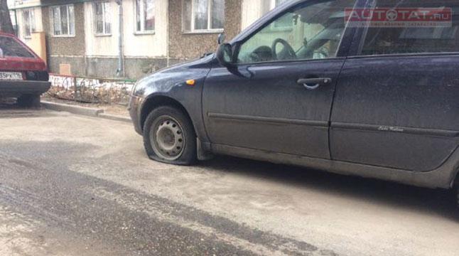 Неприятный инцидент произошел сегодня утром во дворе дома №34 по улице Чуйкова. Казанцы, выйдя из дома, обнаружили на своих машинах проткнутые колеса. Об этом сообщает Татар-Информ.