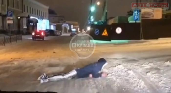 Сегодня вечером в соцсетях появилась видеозапись с неадекватным пешеходом, который решил переползти улицу в Казани.