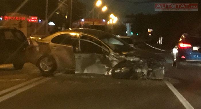 Минувшей ночью на Аделя Кутуя произошло крупное ДТП с участием пяти автомобилей. По словам очевидцев, пара водителей решила устроить гонки и натворили дел, однако эта информация не подтвердилась.