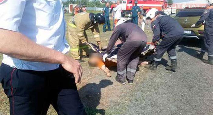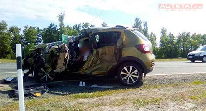 Удар был такой силы, что псевдокроссовер превратился в груду металла. В этом автомобиле ехала семья из Татарстана. От полученных травм 39-летний водитель Renault скончался на месте происшествия.