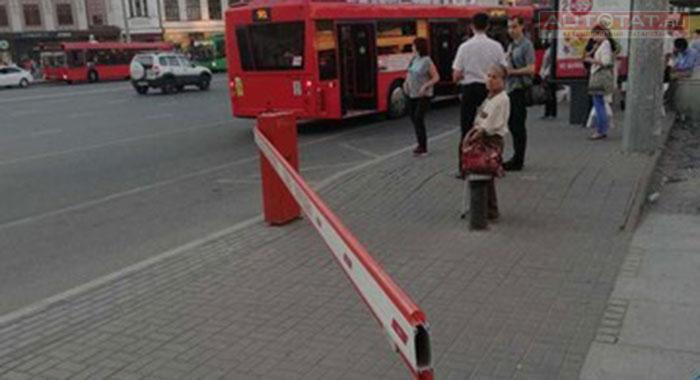 Неадекватный водитель на LADA Priora устроил ДТП недалеко от ТЦ Кольцо, а затем протаранил шлагбаум и выехал на тротуар.