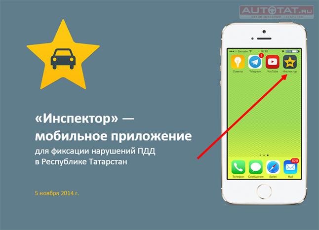 Официальное мобильное приложение «Народный инспектор» можно будет скачать 12 ноября 2014 года. С помощью него каждый казанец сможет снимать на видео и отправлять в ГИБДД нарушителей правил дорожного движения в режиме реального времени, сообщает пресс-центр Министерства информации и связи по РТ.