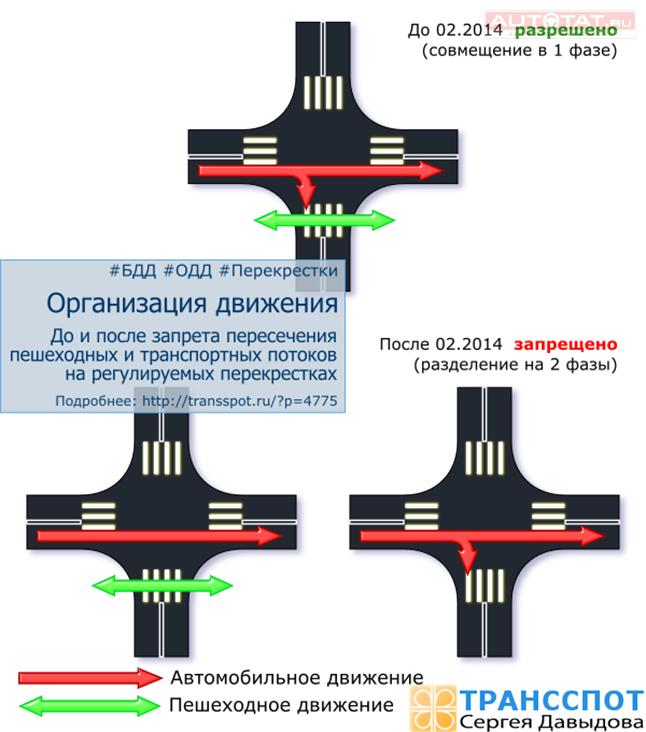 Примечательно, что менять правила, чтобы исправить это “недоразумение” не придется - необходимый документ уже есть. Это ГОСТ Р 52289, в котором запрещается пересечение транспортных и пешеходных потоков в одной фазе светофора.