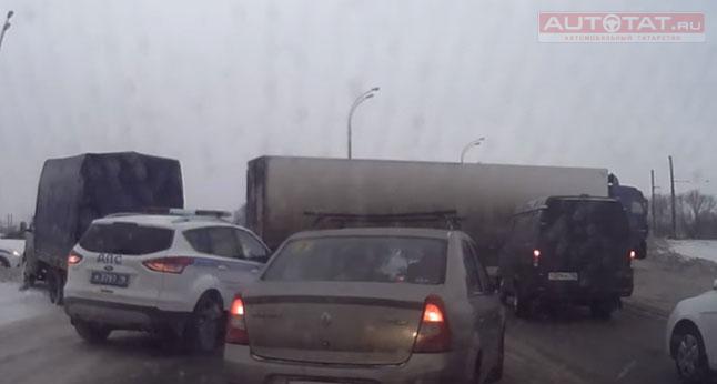 Напомним, что в конце января в сети появился видеоролик, на котором сотрудники правоохранительных органов перекрывают въезд на Орловское шоссе в Челнах при помощи грузовиков. Вот только нарушитель на Mitsubishi Lancer умудряется проскочить в щель и уйти от погони.