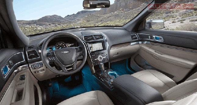В списке стандартного оснащения рестайлинговой версии Ford Explorer значатся 18-дюймовые колесные диски, светодиодные фары, запуск двигателя с кнопки и бесключевой доступ в салон, а также подогрев лобового стекла, двухзонный климат-контроль, круиз-контроль и много других полезных опций.