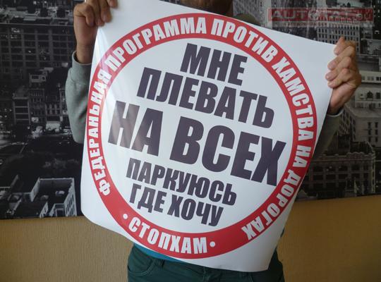 На сей раз организаторы вооружились большими наклейками и футболками с лозунгами "СтопХам".