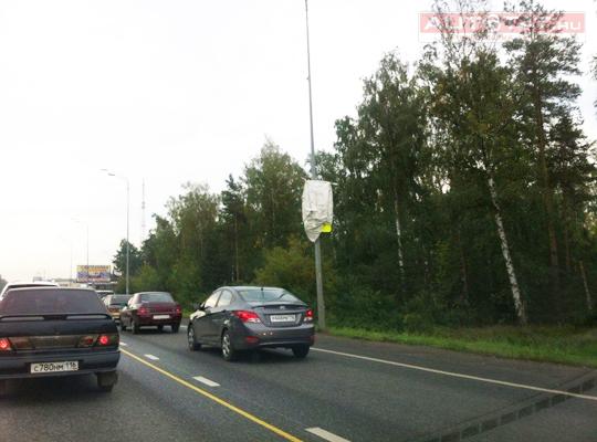 Так, на улице Залесная, ведущей на Горьковское шоссе, наши корреспонденты сфотографировали знак, завешанный мешком, раньше на нем указывался порог в 60 км/ч. Недалеко от него раположен еще один знак, его завесили пакетом, ранее на нем был указан порог в 80 км/ч.