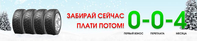 “Колеса даром” рады анонсировать акцию “Забирай сейчас - плати потом!”. Теперь за новые покрышки можно расплатиться в течение 4 месяцев без переплат и первоначального взноса по специальным условиям выгодного кредита от банка-партнера ООО КБ «Ренессанс кредит». Попробуйте сами - вы сразу поймете, насколько легче стало покупать новый комплект зимних шин!