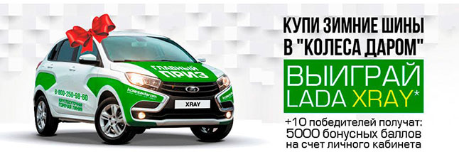 Но самая большая интрига ждет Вас уже на старте зимнего сезона. Интернет-магазин “Колеса даром” объявляет о старте уже третьей по счету акции “Купи зимние шины - выиграй автомобиль!”. На этот раз разыгрывается российский кроссовер LADA XRAY.
