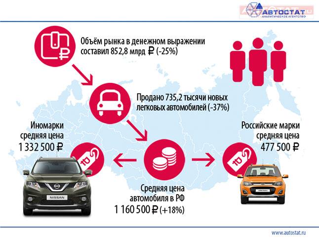 В первом полугодии 2015 года на российском рынке было продано 735.2 тысячи новых легковых автомобилей. Это на 37% меньше, чем за январь-июнь 2014 года. Плюс ко всему, россияне потратили на их покупку всего 852.8 млрд. рублей, что на 25% меньше, чем годом ранее.