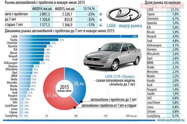 По итогам первых шести месяцев 2015 года объем авторынка с пробегом сократился на 23% и составил 2.2 млн. штук. Эксперты считают, что доля «дилерского сегмента» у автомобилей до 7 лет составила 38.7%. Так какие бренды больше интересны покупателям? Давайте разбираться.