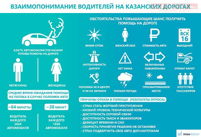 Аналитическое агентство “Промрейтинг” выяснило насколько готовы казанские водители прийти на выручку бедствующим автолюбителям, сломавшимся у дороги в городе.