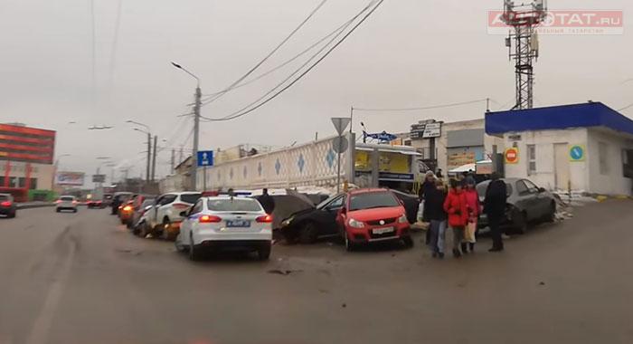 В Казани водителю стало плохо за рулем, он протаранил несколько машин.
