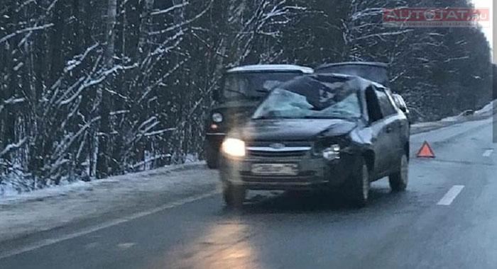 В Лаишевском районе Татарстана произошло серьезное ДТП с участием легковушки и лося, который выбежал на трассу и попал под машину. Фотографии с места аварии появились в соцсетях.