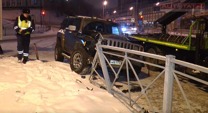 В Казани Hummer врезался в металлическое ограждение.