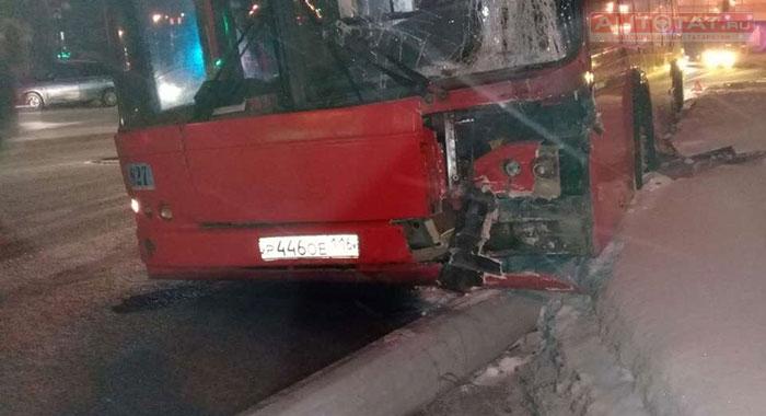 В Казани автобус вылетел с дороги и протаранил столб