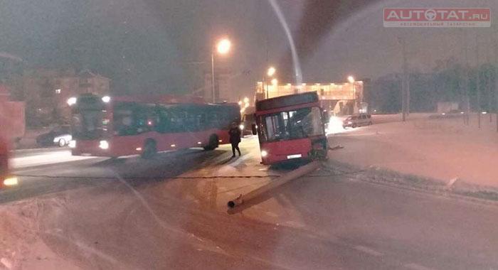 В Кировском районе Казани водитель автобуса маршрута №10А снес дорожный столб. К счастью, в момент ДТП в салоне не было пассажиров.